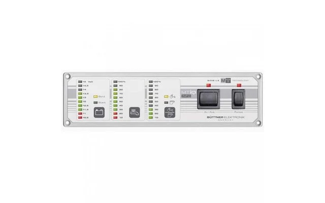 Displays start/on-board voltage plus the fill level in the fresh water/waste water/ sewage tank. Main switch (16 A) and pump switch (10 A) integrated (please order tank sensor separately).