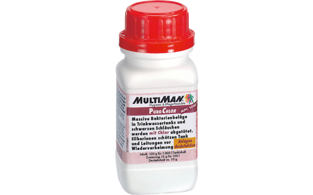 MultiMan PuroChlor sanitizes and regenerates drinking water layers in older caravans and motor homes, sailing and motor yachts!