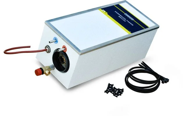 - heats the water via the warm air of the parking heater or via heating rod (200W)