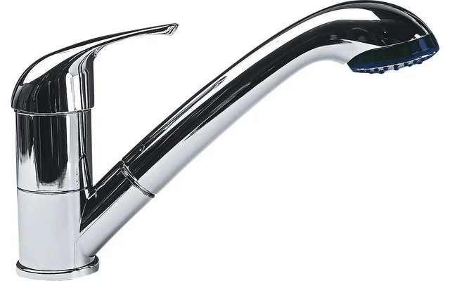 Single-lever mixer KERAMIK KAMA with Pull-Out Sprayer JULIA Plastic Valve with Ceramic Cartridge. Waterproof microswitch. With metal shower hose.