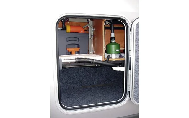 The SOGII offers the advantage that the filter cartridge can be placed very variably at the most different places in the camping vehicle and is vented at any place over the ground (e.g. in the garage, under the seat bench, in the double bottom or in the storage compartment).Both before the compact unit, and to the ground outlet a hose, or pipe extension (up to three meters from the toilet) can be attached around a suitable place to find.