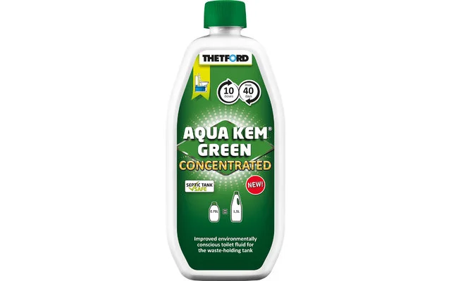 Strong composition which decomposes solid substances and toilet paper while Aqua Kem Green provides excellent odour-neutralisation with a biological effect. Aqua Kem Green is an environmentally friendly, double-concentrated and highly effective green sanitary fluid for the sewage tank in your cassette or camping toilet. One bottle of Aqua Kem Green corresponds to 10 x 75 ml doses.