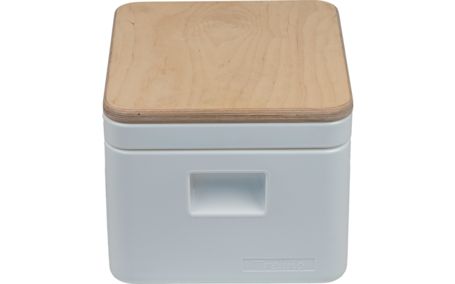 Trelino M: Housing made of polyethylene (PE) in the ordered color and variation, integrated toilet seat, made of one casting with top part for easy, hygienic cleaning. Urine canister 5 l incl. Membrane closure, solids bucket 8 l, multilayer wooden lid with holding magnets (wood is natural and can be designed individually by the customer),Optional variant with fan – fan set: fan with clamp connection Ø of 40 mm, (option: fan on the right or left – viewed from the front), connection: clamp connection (3-pin Molex), 1.5 m hose, housing and gill plate